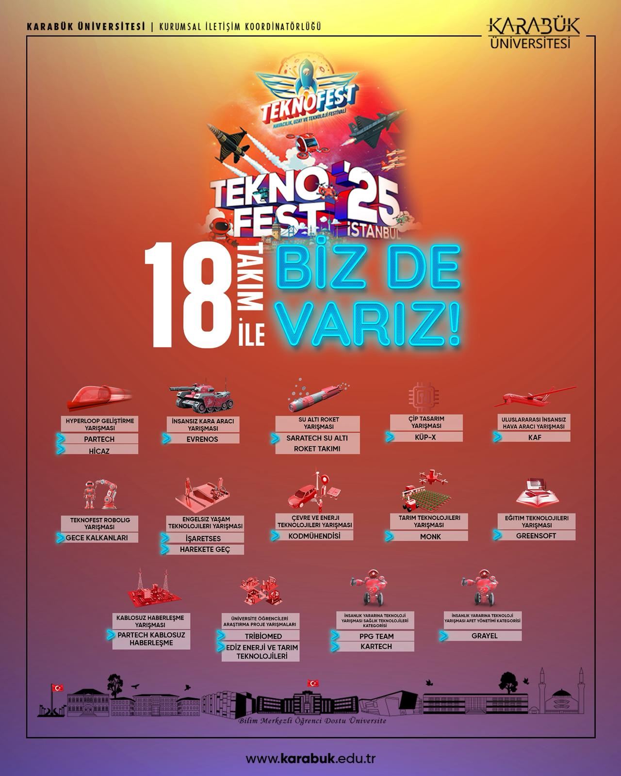 TEKNOFEST 2025 finallerine kalan Karabük Üniversitesi takımları şu şekilde: