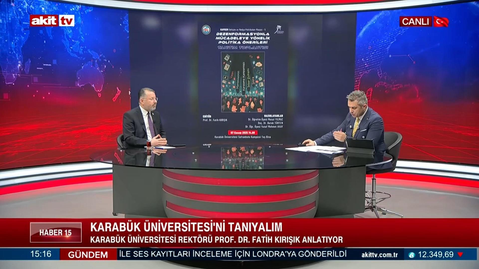 Karabük Üniversitesi (KBÜ) Rektörü Prof. Dr. Fatih Kırışık, Akit TV’de canlı yayımlanan ve Feridun Erdoğral’ın sunduğu Haber 15 programında üniversitenin akademik yapısı ve stratejik hedeflerine ilişkin açıklamalarda bulundu.